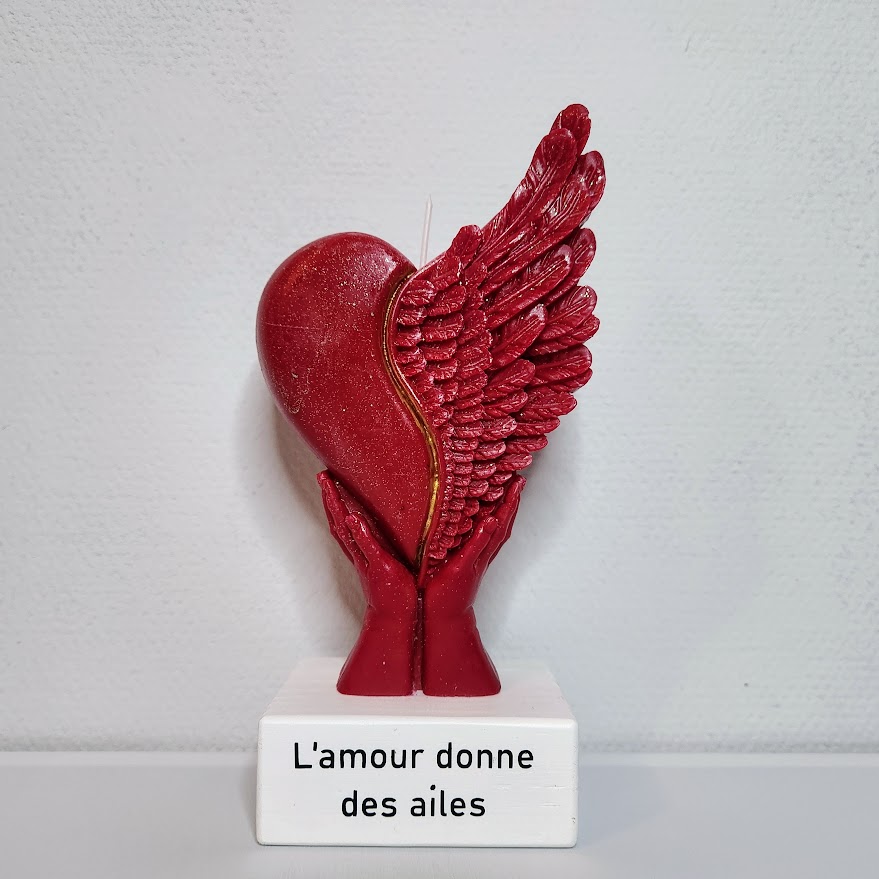 Laissez-vous emporter par la magie de l’amour avec notre bougie de 17 cm en forme de cœur, délicatement ornée d’une aile. Cette bougie  symbolise l’amour qui élève et inspire, créant une ambiance chaleureuse et romantique dans votre intérieur. Que ce soit pour une soirée en tête-à-tête, en cadeau pour la Saint Valentin  ou pour célébrer une occasion spéciale, cette bougie apportera une touche d’élégance et de douceur. Offrez-vous ou offrez à vos proches un symbole d’amour qui donne des ailes ! 🕯️❤️✨