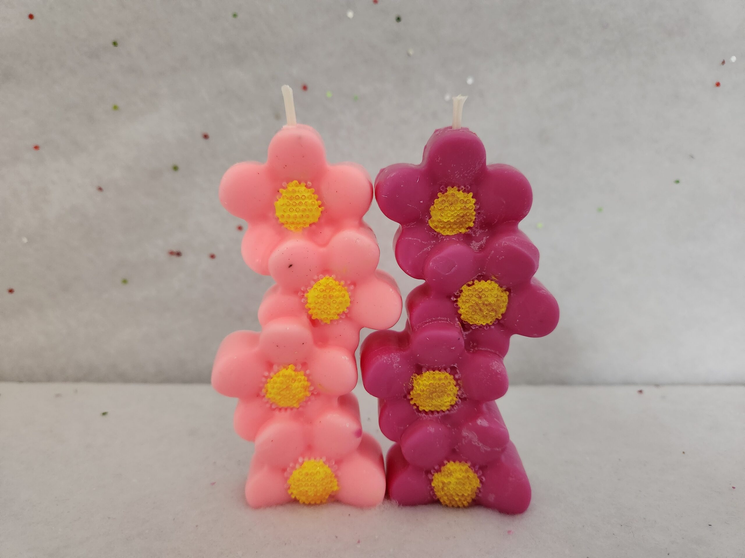 Bougie Rangée de Fleurs Rose fushia et Rose pâle
