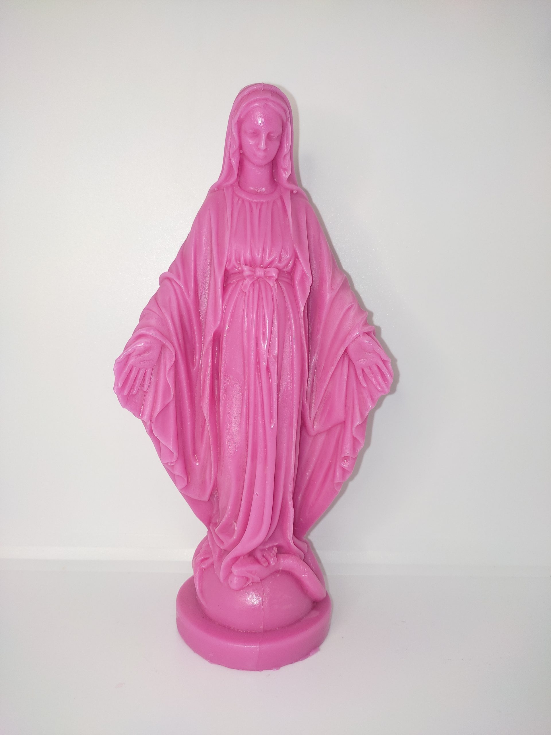 Création exclusive, cette reproduction miniature n’est pas une bougie traditionnelle. Une statuette de la Vierge ne pouvant pas être consumée par respect pour la figure religieuse qu’elle représente, elle est vendue sans mèche.